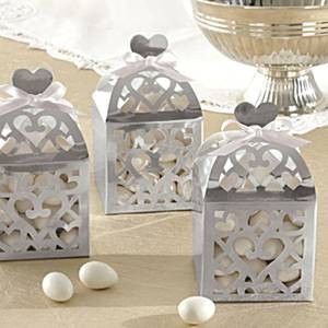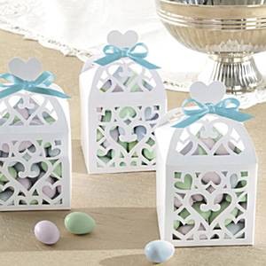 10 stk gaveesker med laserskjært hjerte 5x5 cm.