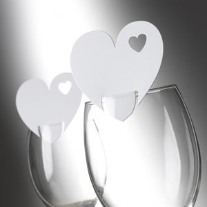 Bordkort Hjerte 8x7cm 10stk Hvit for å henge på glass.