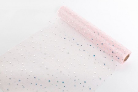Organzaløper Lys Rosa med sølvprikker 10meterx29cm