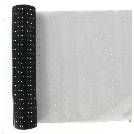 Nydelig organzaløper 10 meter lang og 29 cm bred. Svart med sølvprikker. Kjempeflott å bruke som bordløper eller til andre dekorasjoner. Til bryllup, dåp, konfirmasjon eller bursdag. Selges kun som hel rull på 10 meter.