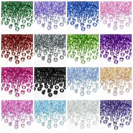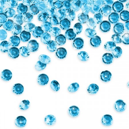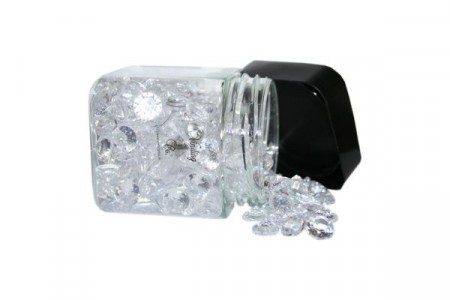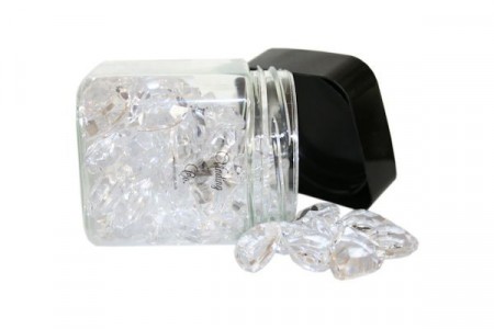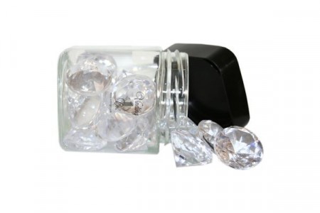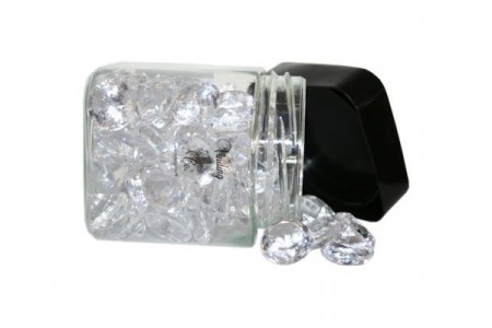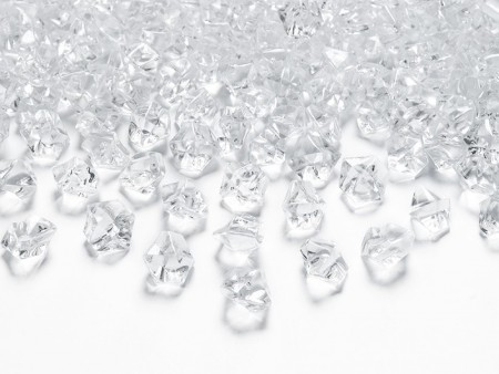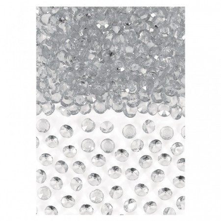 100 gram. Pakken inneholder 100gram diamanter, 6 og 12 mm. Nydelige å bruke som strøpynt til å pynte festbord.