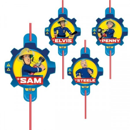 8 stk kule brannmann Sam Partyposer 23cm x 17cm