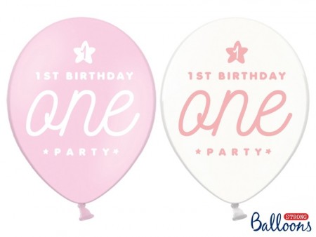 Ballongsett First Birthday, rosa Ballongsett First Birthday i rosa farge, sett inneholder lateksballonger (8 stk) og folieballong nummer 1