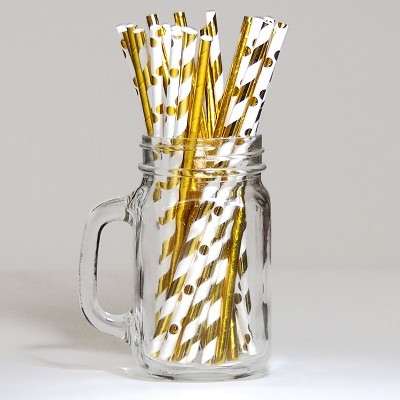 Papirsugerør Gull hjerter 19.5cm 10stk