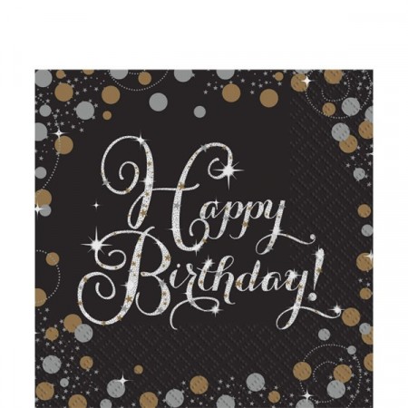 Stripete Servietter Gull Metallic 16stk Lunsj