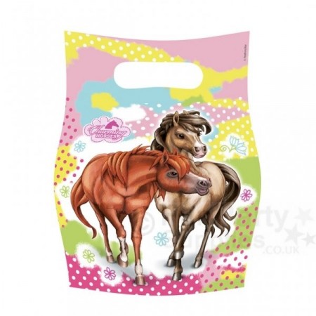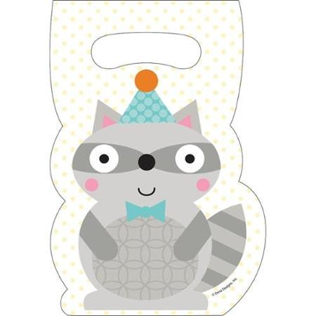 Godteposer Pirates Party laget av kraftpapir. Settet inneholder 6 poser med trykk og 6 klistremerker, størrelse etter montering ca. 8 x 18 x 6 cm.