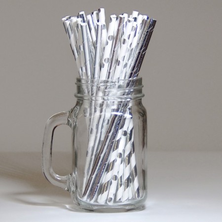 Papirsugerør 10 stk Striper Sølv NY