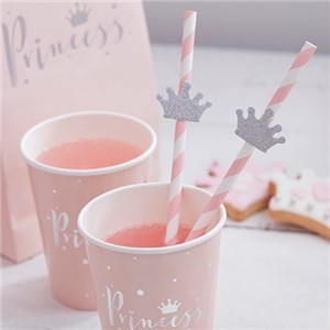 Papirsugerør light pink/gull striper 19.5cm 10stk
