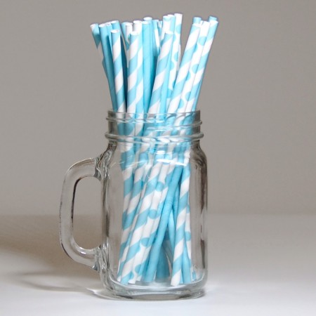 Papirsugerør 10 stk Striper Lysblå