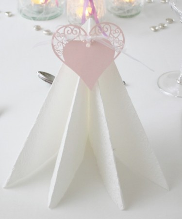 Bordkort finerhjerte Hvit med bånd H6,5 cm 12stk
