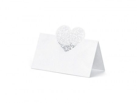 Bordkort Hjerte 8x7cm 10stk Hvit