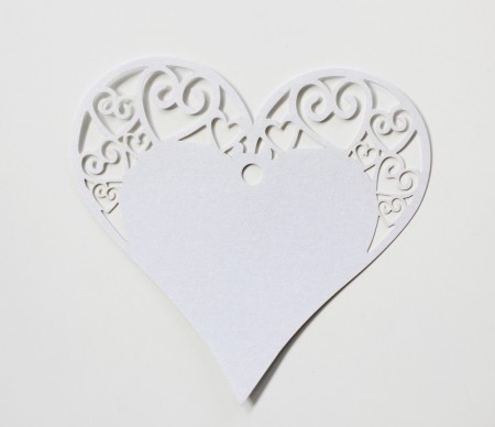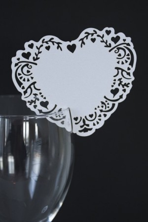 10 stk nydelige bordkort med laser skåret hjerte for å sette på bordet. 9x6,5 cm.