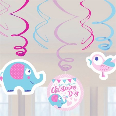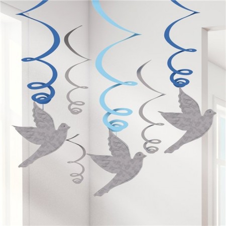 12 pk hengende swirls, 55.8cm. Flott pynt til festen.