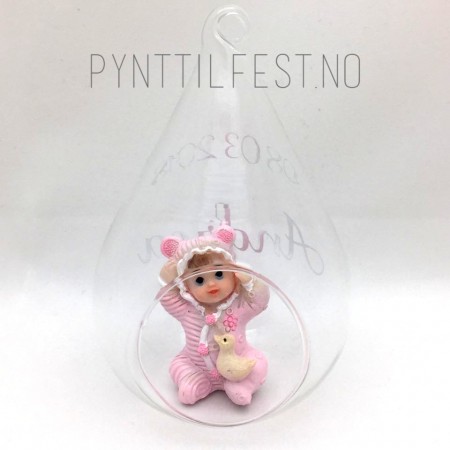 Navnet og årstallet du ønsker på kulen skriver du i kommentarfeltet i kassen. Min første jul og årstall settes på den ene siden og navnet settes på andre siden av kulen. Ønsker du annen farge på kulen skriver du bare det i kommentarfeltet.