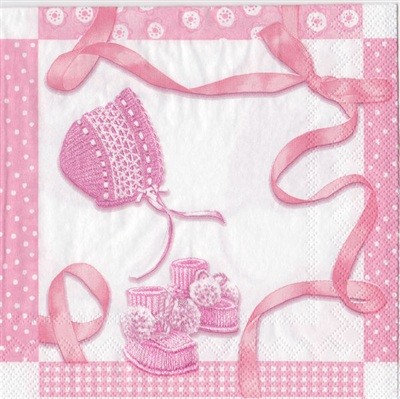 Serviett lunsj 20 stk Dåpssko rosa 3 lag 33x33cm