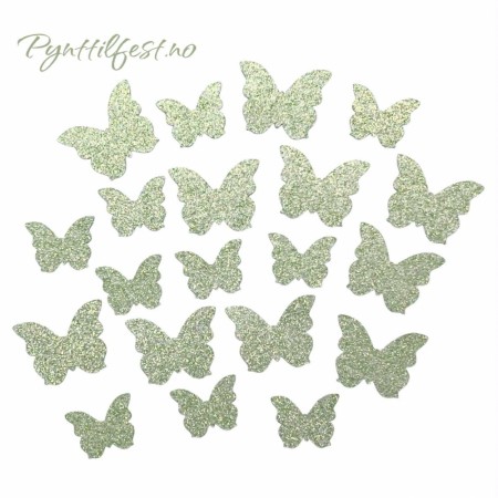 20 stk sommerfugler, 10 stk 4cm og 10stk 3cm. Confetti av glitterpapp.