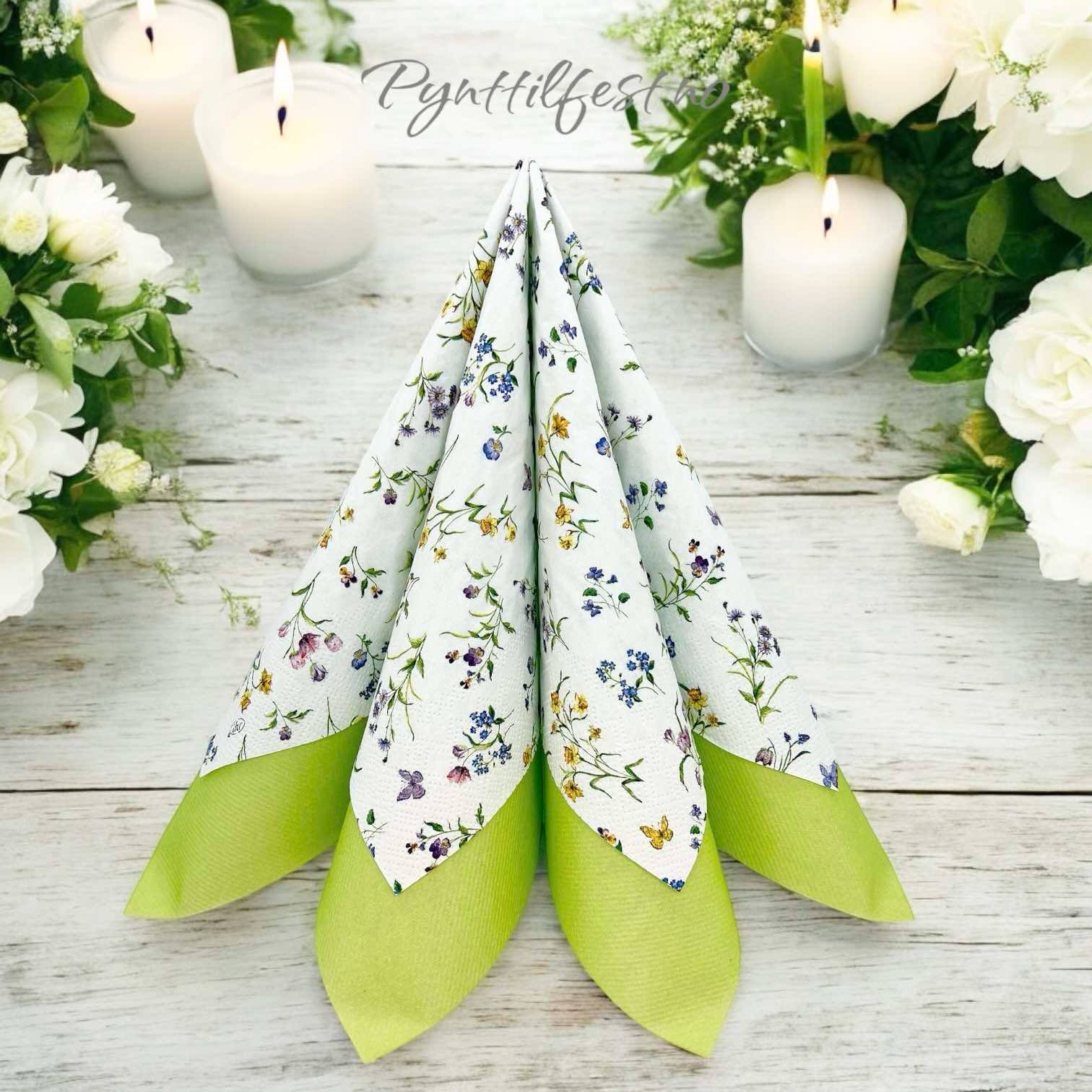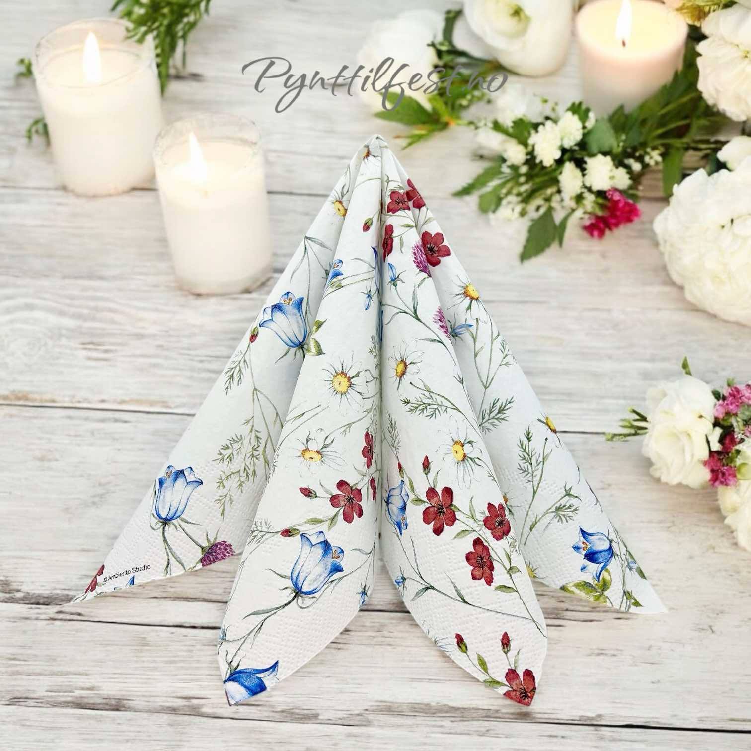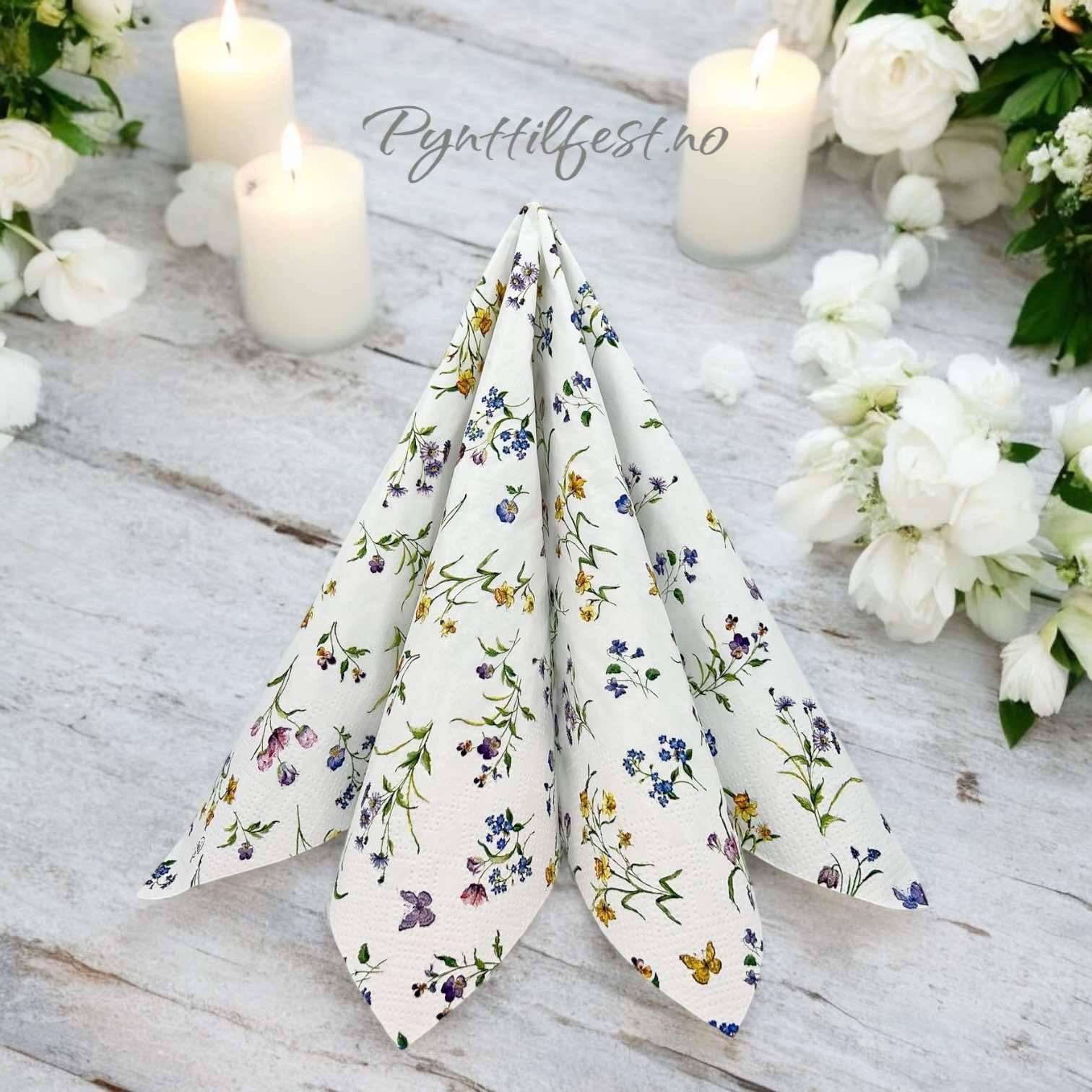 Servietter Lunsj Mixed Wild Flowers White 20stk