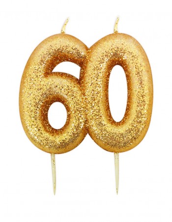 Støpt kakelys på pinne Glitter Gull Nr 60 7,5cm