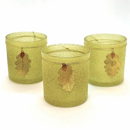 Lysglass grønn m/gullblomster 7x8cm Lysglass til telys