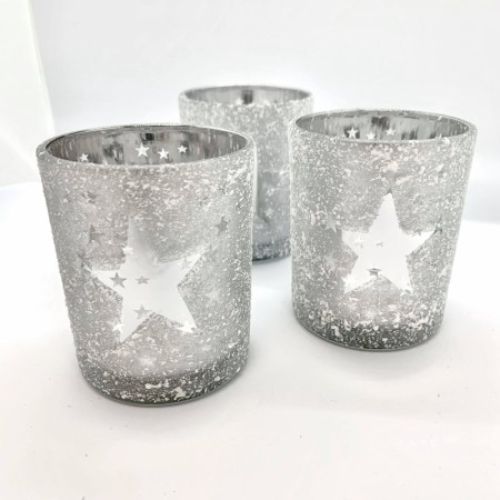 Nydelige telysholdere i frostet glass med bling rundt kanten. Selges pr stk.