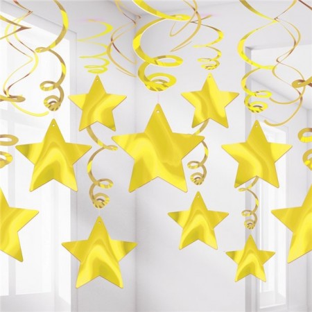 Swirls hengende stjerner sølv/gull 60cm 5stk