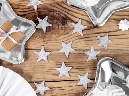 Papirsugerør 10 stk Stjerner Sølv