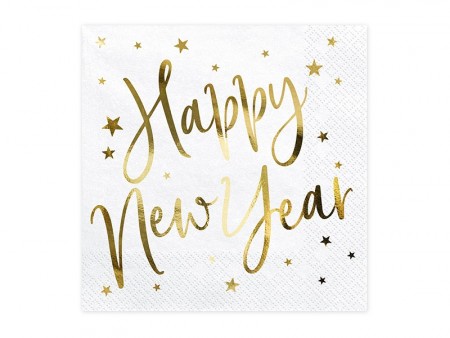 Servietter Happy new year gull/hvit Lunsj 20stk