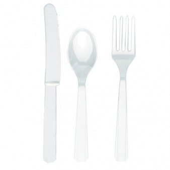 Servise Metallic Bestikk Sølv 18 pk, plastikkbestikk, 6 stk skjeer, 6 stk kniver og 6 stk gafler.