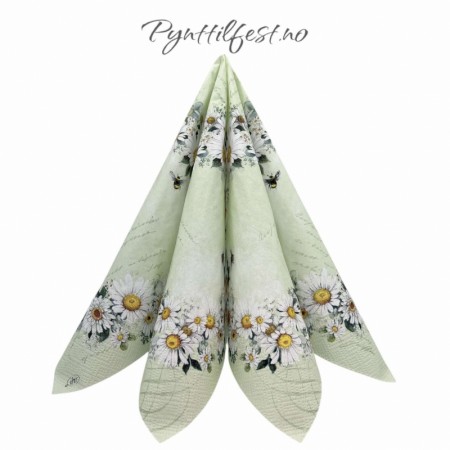 Lunsjservietter: 33x33 cm. Serviettene er 16,5x16,5 cm når de ikke er utbrettet.
