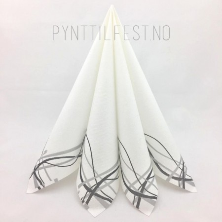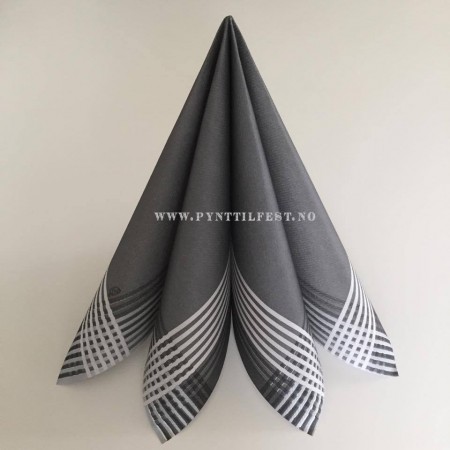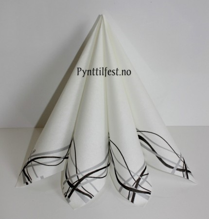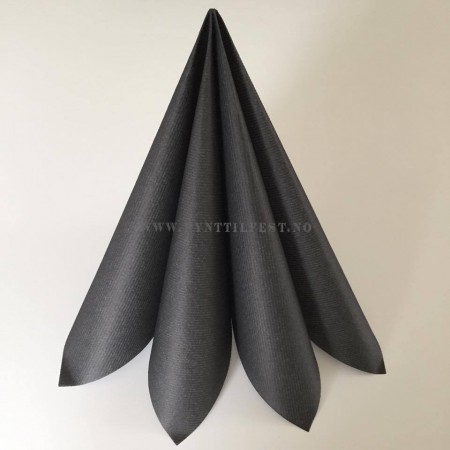 Ensfargede, tekstil-lignende ettlags servietter av god kvalitet, loer ikke, svart på begge sider.