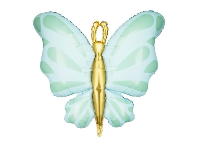 Folieballong sommerfugl, 69x69 cm, blå Folieballong Butterfly i mint farge. Dimensjoner før oppblåsing ca. 101 x 83 cm, dimensjoner etter oppblåsing ca. 69 x 69 cm. Blås opp med helium eller luft. Settet inkluderer et sugerør. Selvlukkende ballong. Har 2 kroker for enkel dekorasjonsmontering.