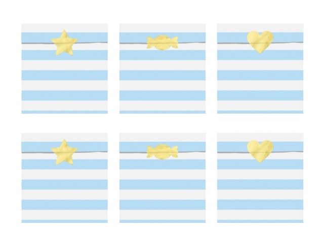 Popcornbokser Lysblå med Gullstriper 7x7x12.5cm 6stk