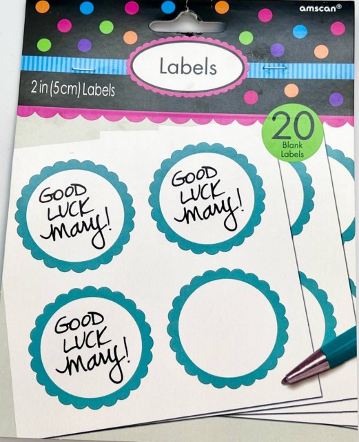 Designe dine partyposer og gaver med klistremerke etiketter. Disse klistermerker har fargede kanter og blank plass for deg å skrive et navn eller tekst. Hver pakke inneholder 20 selvklebende etiketter, hver 5cm. kan også brukes til å merke Candy skålene og merke koppene til gjestene i bursdagen.
