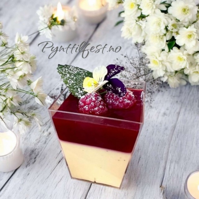 Tar seg godt ut på bordet, og kan brukes til desserter, småretter, forretter og annet.