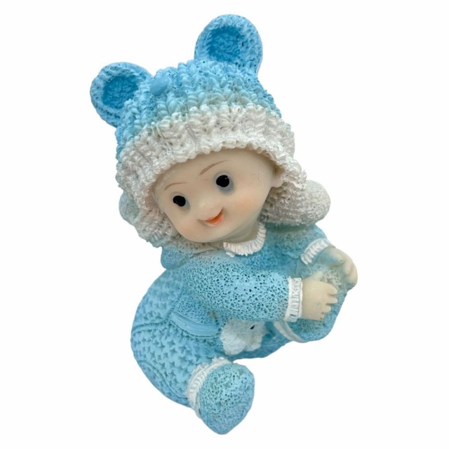 Baby sittende Blå, 8 cm