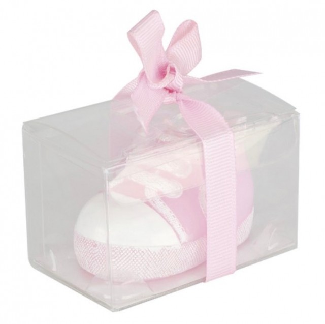 Babysko med navn og dato 14x7,5x8cm lys rosa