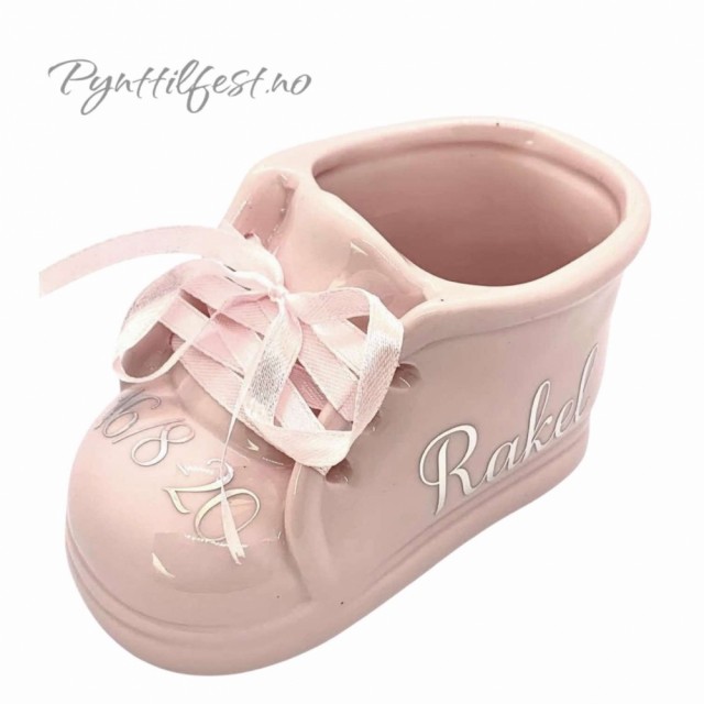 Skriv i kommentarfeltet i kassen hvilket navn og dato du ønsker på skoen. Navn og dato lages av sølvfarget speilvinyl. Ved stor pågang i nettbutikken kan det ta et par ekstra dager før vi sender bestillinger med varer som skal personligjøres. Det er ingen returrett på personliggjorte produkter.