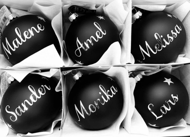 Ønsker du flere navn eller årstall på en kule kan det kjøpes til her: Ekstra navn