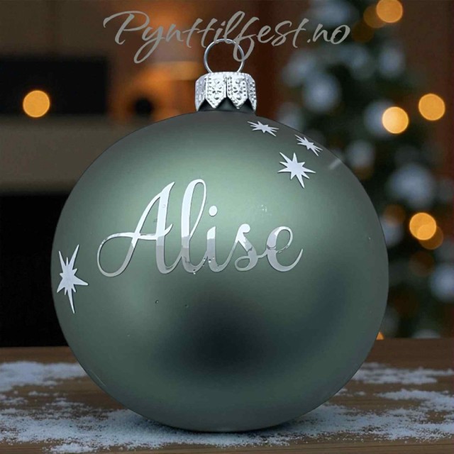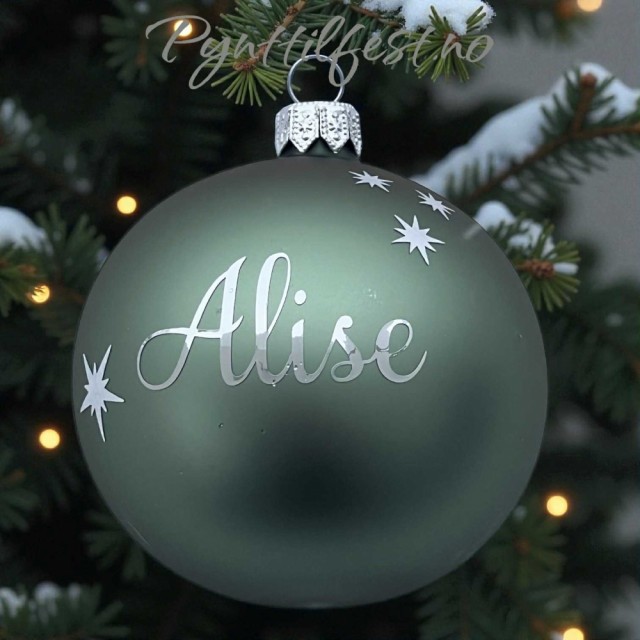 Julekule med personlig navn SageGreen/sølvtekst 8cm