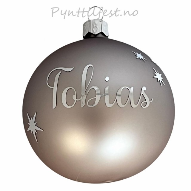Julekule med personlig navn BlushPink/sølvskrift 8cm