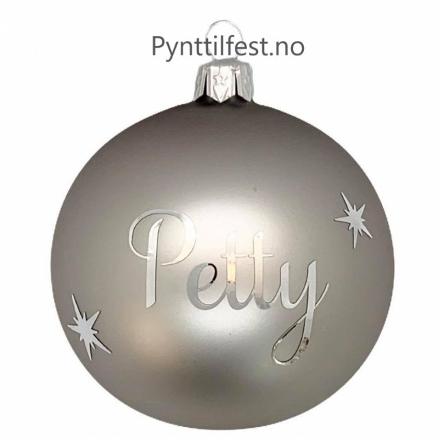 Julekule med personlig navn SølvMatt/sølvtekst 8cm