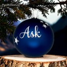 Julekule med personlig navn NightBlue/sølvskrift 8cm