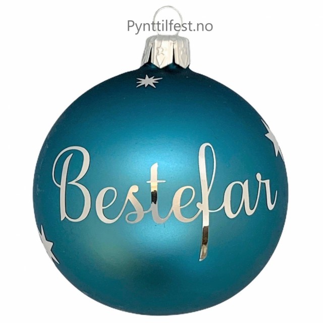 Søk etter "glass julekule 8cm med personlig navn turkis solv skrift" returnerte 100 treff