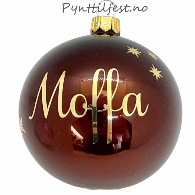 Glass julekule med navn 8 cm i egen eske. Ett navn pr kule. Ved stor pågang kan det ta et par ekstra dager før bestillingen din blir sendt.