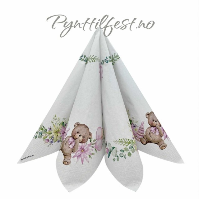 • Servietter Lunsj Baby Teddy Bear Rosa 20stk